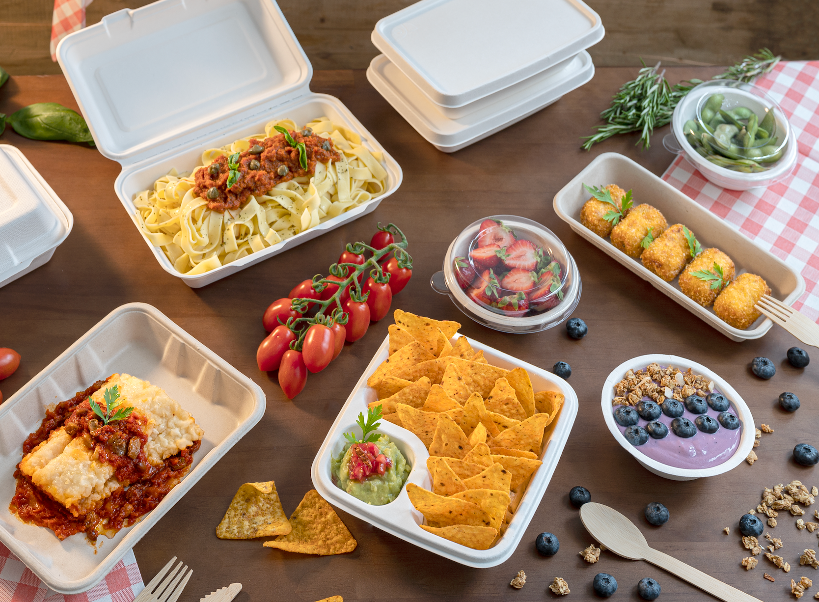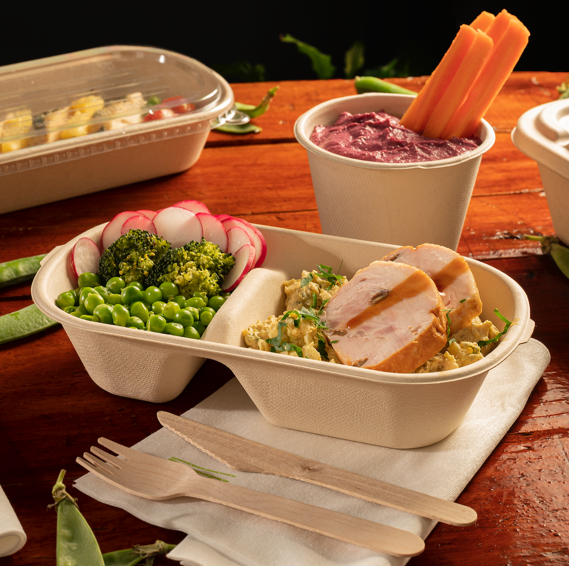 Boxen 2 Fächer 'Bionic' 900 Ml 22,4X14X6 Cm Weiss Bagasse (400 Einheit) - Code 253.96